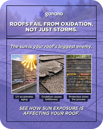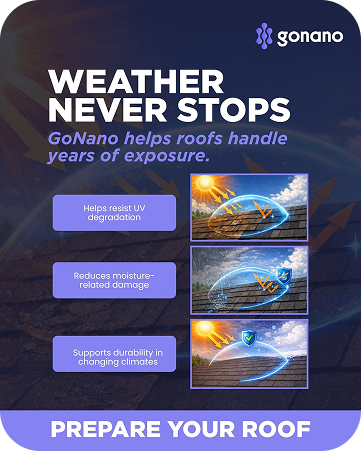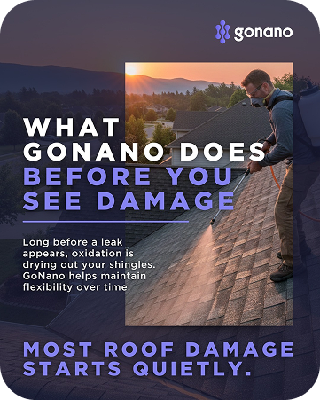 GoNano technology has changed how roof sealants work. Traditional shingles are sealed with oil, which simply fills the gaps between them. GoNano works deeper—it permanently strengthens the molecular structure of each asphalt shingle. After application, a reaction inside the shingle creates S1 particles, which bond the granules together. This inside-out protection forms a stronger barrier against the elements and helps extend the lifespan of your roof, saving you money.