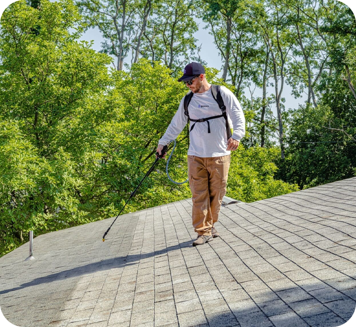 Our nanotechnology penetrates and permanently modifies your shingles at the molecular level — not just a surface coating.